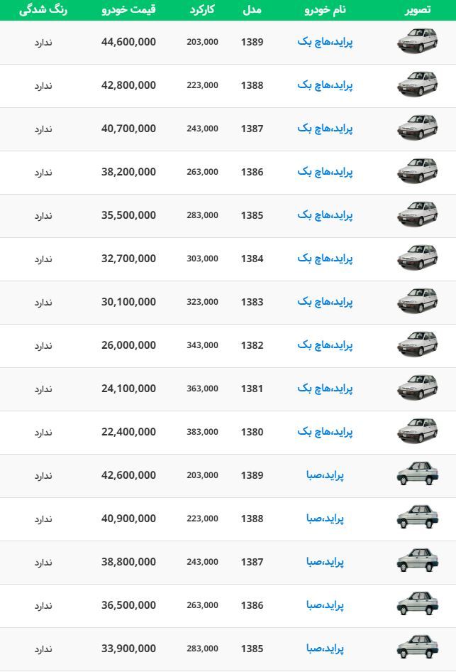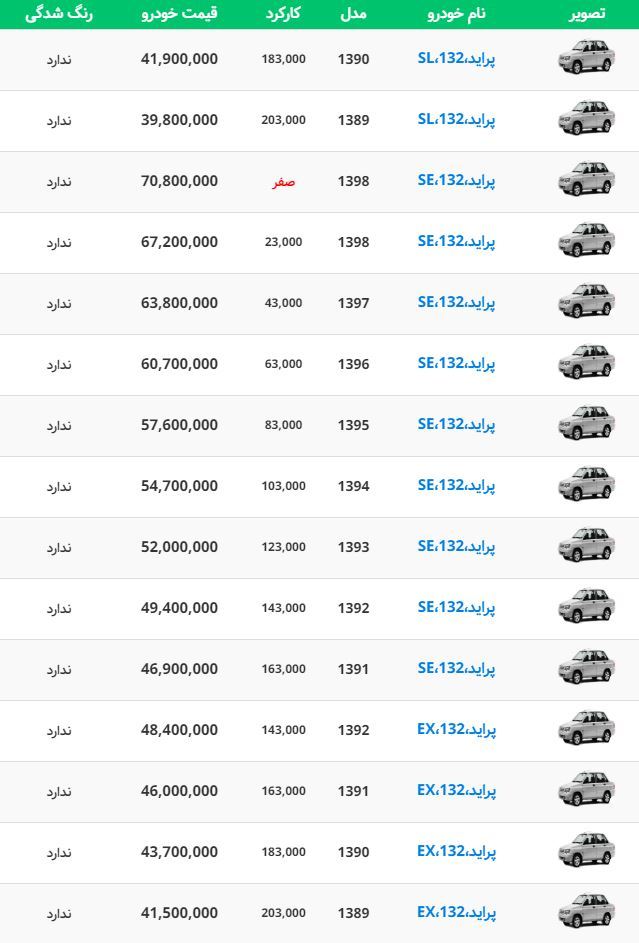 افزایش غیرمنطقی قیمت پراید(جدول قیمت امروز صفر و کارکرده)