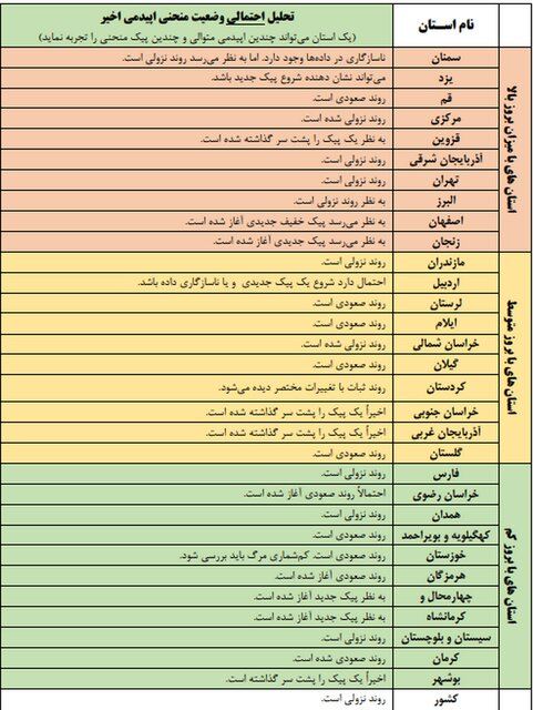 تحلیل احتمالی وضعیت منحنی اپیدمی اخیر در استانها