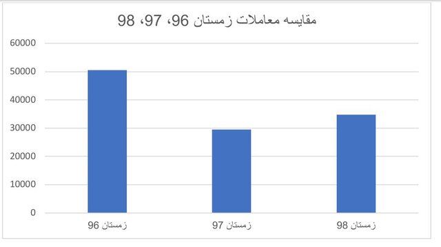 با این حال تعداد قراردادهای خرید و فروش در زمستان ۹۸ نسبت به زمستان ۹۶ کاهش داشته است. آمار نشان میدهد در زمستان ۹۸ تعداد ۳۴ هزار و ۸۲۰ معامله در تهران انجام شده که نسبت به ۲۹ هزار و ۴۶۷ قرارداد خرید و فروش در زمستان ۹۷ بالغ بر ۱۸ درصد افزایش یافته اما در مقایسه با ۵۰ هزار و ۵۵۱ معامله در زمستان ۹۶ کاهش ۳۱ درصدی را نشان می دهد.