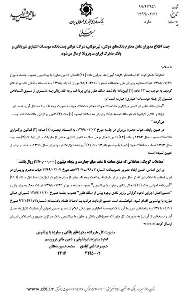 تصویر این بخشنامه بانک مرکزی و پیوست آن در ادامه آمده است: