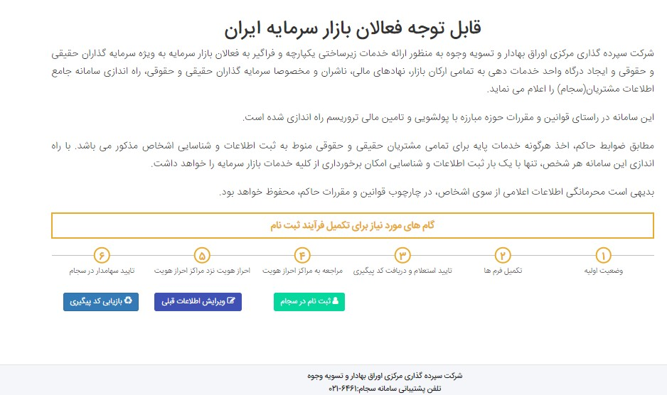 وی گفته بود: به زودی شرکت سپردهگذاری مرکزی تمهیداتی فراهم میکند که احراز هویت مشتریان بورسی در سامانه سجام به صورت غیرحضوری و الکترونیکی انجام شود.