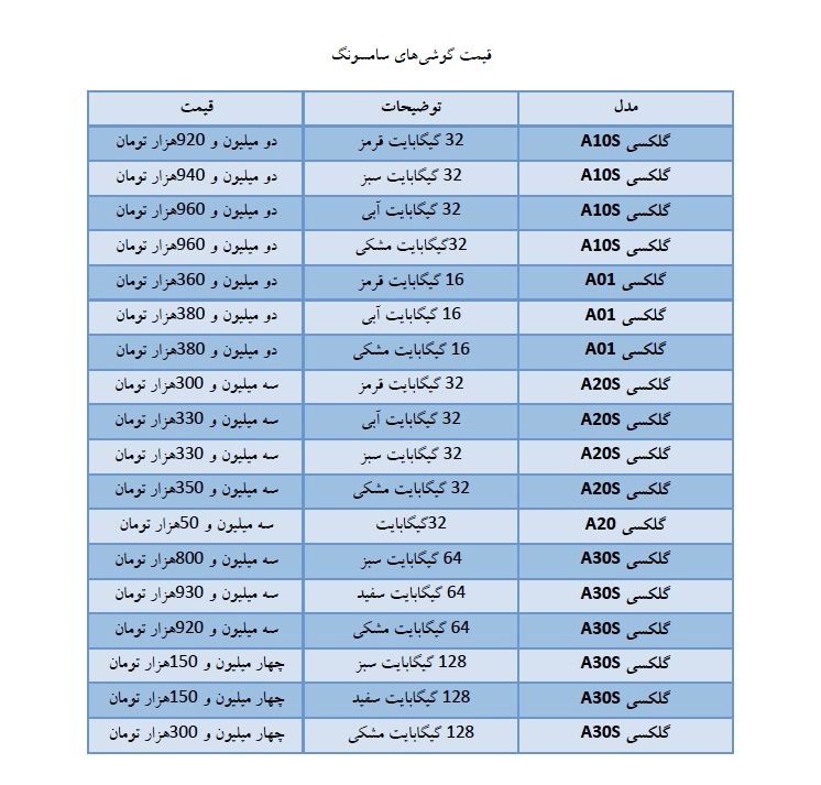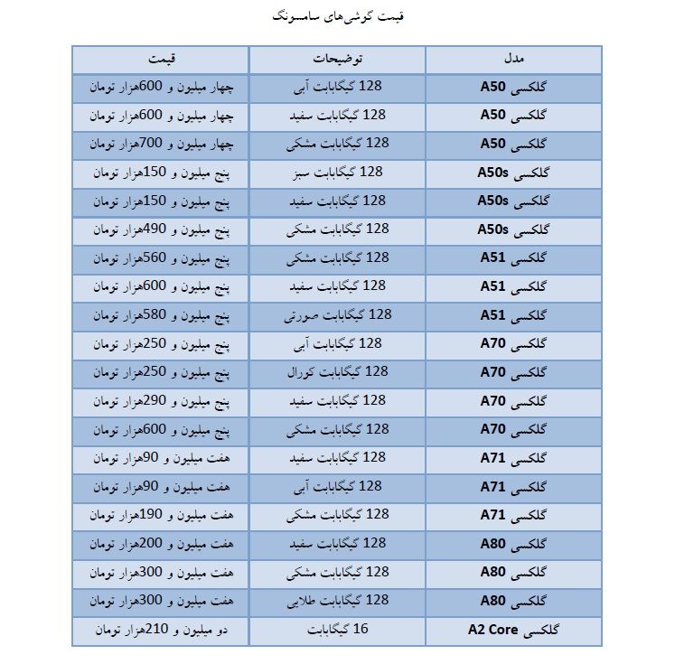 قیمت گوشیهای سامسونگ