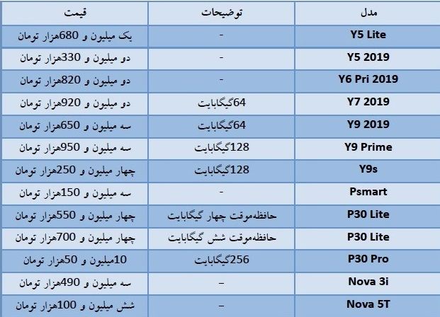 قیمت گوشی هوآوی