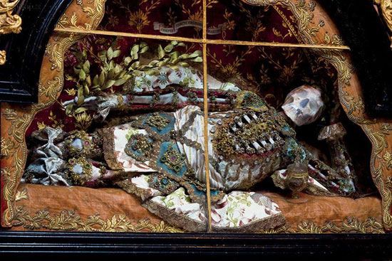 به گزارش سایت طلا ،در سال ۱۵۷۸ میلادی در شهر رم مجموعه‌ای از هزاران قبر قدیمی وابسته به شهدای مسیحی کشف شد. در بین این اجساد، جسد‌های افراد مطرحی همچون سنت البرتوس، سنت والریوس، سنت والنتین و. نیز یافت شد که بلافاصله به کلیسای کاتولیک فرستاده شد تا آثاری مقدسی که بدلیل تهاجم‌ها آسیب دیده بودند بازسازی گردند.