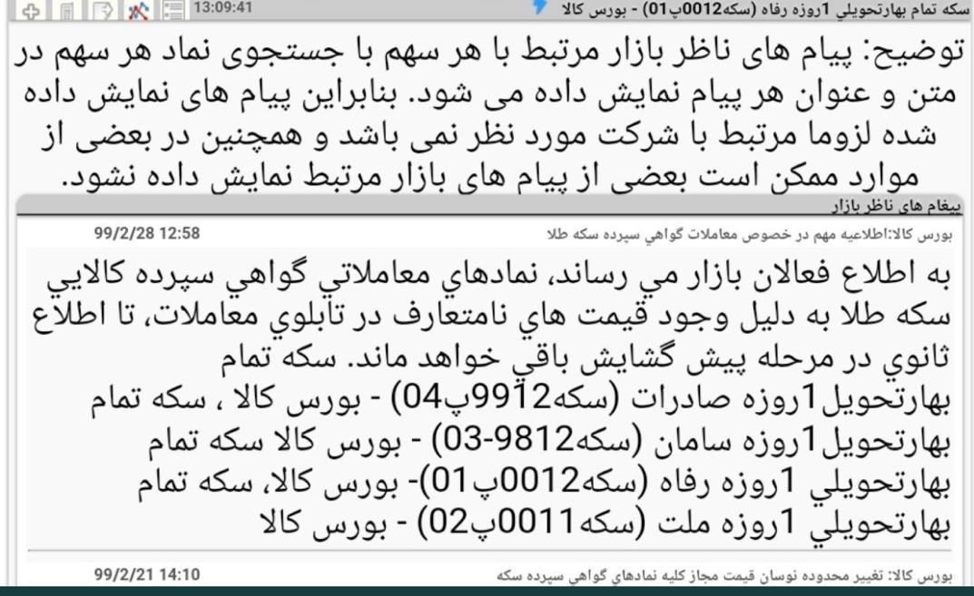این نمادها شامل سکه تمام بهار تحویل یک روزه بانک های صادرات ، (سکه9912پ04) ، سامان (سکه9812-03) رفاه کارگران (سکه0012پ01) و بانک ملت (سکه0011پ02) - بورس کالا است .