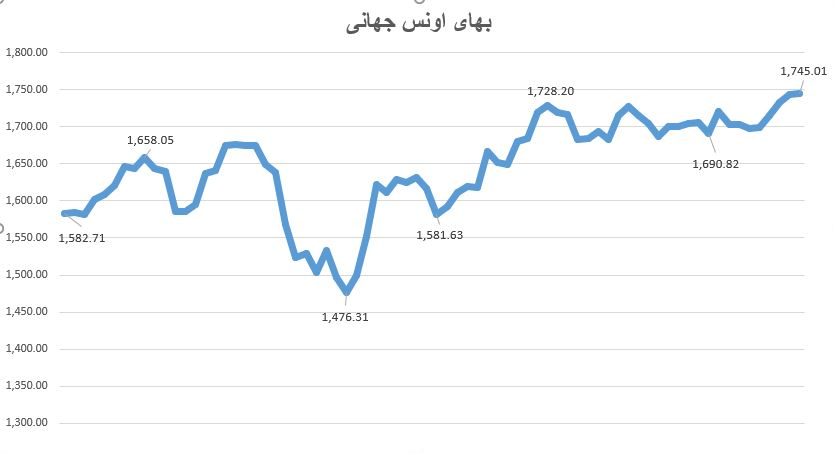 از 26 بهمن ماه، 15 فوریه که بهتدریج ویروس کرونا در حال فراگیر شدن در جهان و اثرگذاری بر اقتصادها بود، بهای اونس در سطح 1583 دلار قرار داشت. این روند افزایشی به مرحلهای رسید است که تا روز گذشته اونس طلا در سطح 1745 دلار قرار گرفت. امروز بعد از بازگشایی بازار بهای اونس مجددا افزایش بافت و به 1763 دلار رسید.