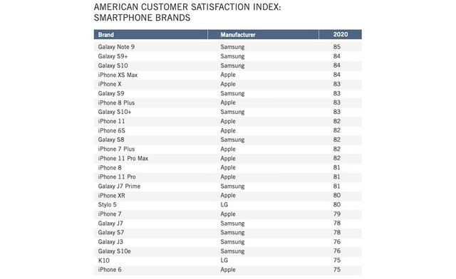 در جدیدترین تحقیقات صورت گرفته میزان رضایت کاربران و مشتریان آمریکایی از گوشی‌های هوشمند موجود در بازار این کشور ارائه و منتشر شده است.