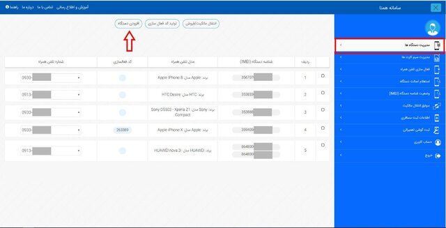 پس از وارد کردن شماره سیم‌کارت، رمز عبور موقت برای آن شماره ارسال می‌شود. با استفاده از رمز عبور ارسال شده و وارد کردن کد امنیتی، وارد سامانه شوید. در ادامه در صفحه اصلی «مدیریت دستگاه‌ها» روی گزینه «افزودن دستگاه» کلیک ‌کنید.