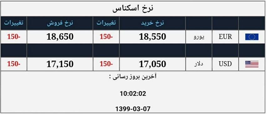 همچنین هر فرانک سوئیس ۴۳ هزار و ۴۵۰ ریال، کرون سوئد ۴ هزار و ۳۵۵ ریال، کرون نروژ ۴ هزار و ۲۳۳ ریال، کرون دانمارک ۶ هزار و ۱۷۰ ریال، روپیه هند ۵۵۶ ریال، درهم امارات متحده عربی ۱۱ هزار و ۴۳۷ ریال، دینار کویت ۱۳۶ هزار و ۵۳ ریال، یکصد روپیه پاکستان ۲۶ هزار و ۶۱ ریال، یکصد ین ژاپن ۳۹ هزار و ۸۰ ریال، دلار هنگ کنگ ۵ هزار و ۴۱۸ ریال، ریال عمان ۱۰۹ هزار و ۲۳۴ ریال و دلار کانادا ۳۰ هزار و ۴۴۹ ریال قیمت خورد.