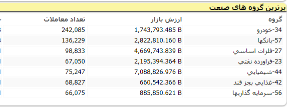 بانکهای ملت، تجارت، صادرات ایران و اقتصاد نوین، فولاد مبارکه اصفهان، پالایش نفت اصفهان و ملی صنایع مس ایران نمادهای پر بیننده بورس بودند.