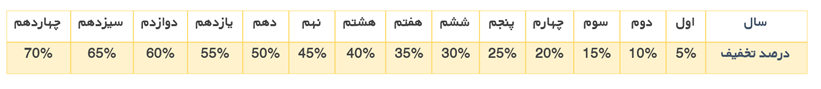 طبق جدول زیر میتوانید تعداد سال و میزان تخفیف خود را محاسبه کنید.