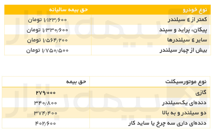 حق بیمه برای وسایل نقلیه سواری با کاربری مسافرکشی درونشهری، 10% و برونشهری ۲۰٪ بیشتر از سایر وسایل نقلیه مشابه است.