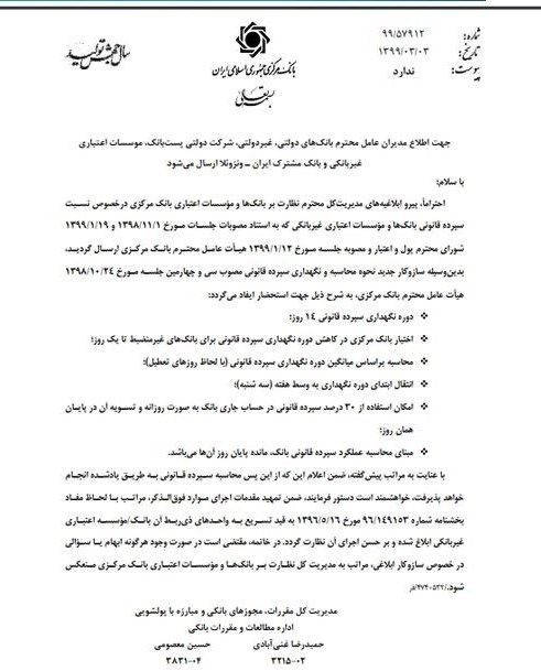 اختیار بانک مرکزی در کاهش دوره نگهداری سپرده قانونی برای بانکهای غیرمنضبط تا یک روز؛