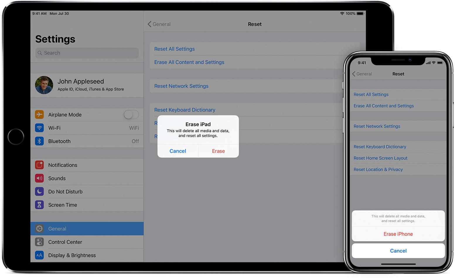 اجازه ندهید کسی از دادههای شما استفاده کند. تلفن خود را با رفتن به تنظیمات> عمومی> تنظیم مجدد> پاک کردن کلیه محتوا و تنظیمات ایمن کنید و نگذارید کسی که به اطلاعات شما دسترسی پیدا کند.
