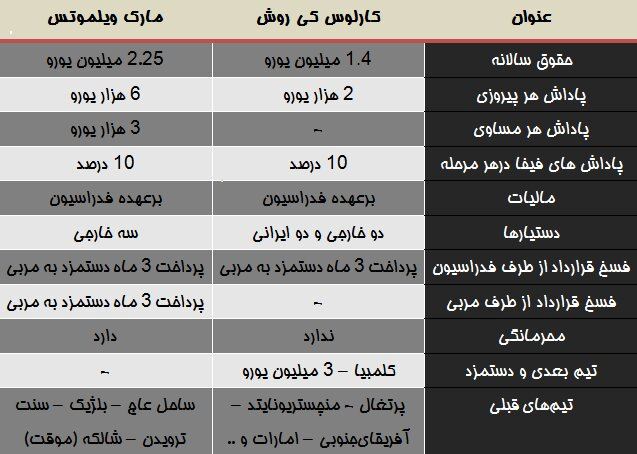 مقایسه جزییات قرارداد کیروش و ویلموتس + جدول