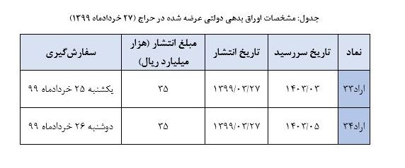 * برگزاری حراج اوراق بدهی دولتی در 27 خردادماه 1399