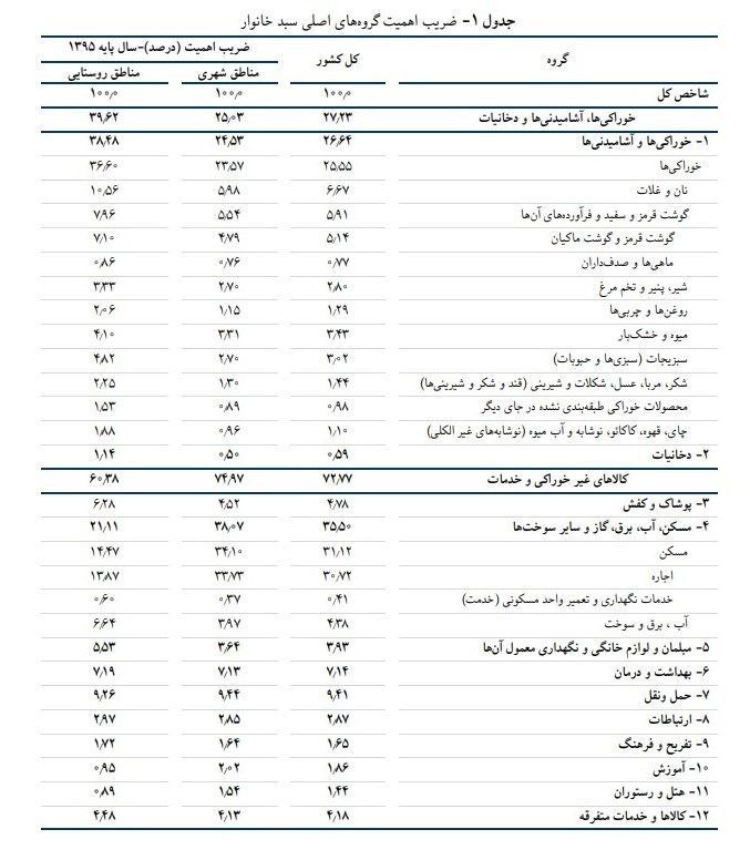 بر اساس این جدول ضریب اهمیت خرید وسایل نقلیه در سبد خانوارهای کشور 2٫92 درصد از کل سبد خانوار و 31 درصد از گروه حمل و نقل بوده که این عدد به معنای تأثیر این قلم در محاسبهی شاخص کل است.