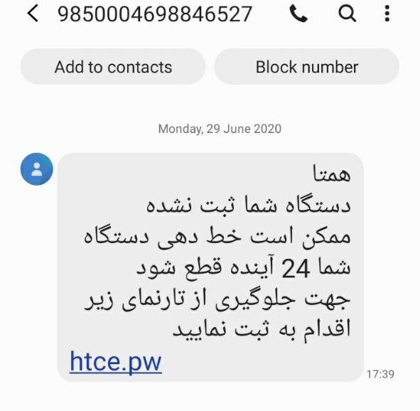 فریب پیامک کلاهبرداری به اسم همتا را نخورید