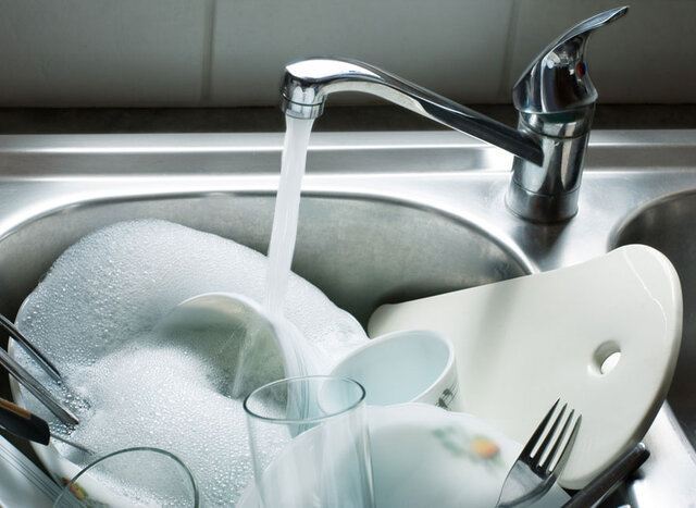 ۵) پس از پایان شستوشوی ظروف در صورت عدم استفاده از دستکش، دستها بلافاصله با آب و صابون شسته شوند.