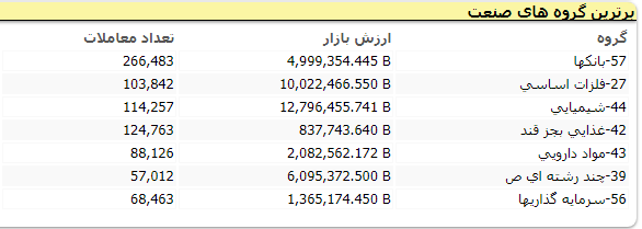 نمادهای پربیننده در بورس شامل بانک ملت، فولاد مبارکه، بانک تجارت، بانک صادرات ایران، گسترش سرمایه گذاری ایران خودرو، پالایش نفت تهران و پالایش نفت بندرعباس بودهاند.