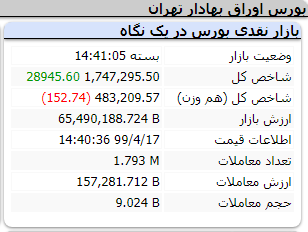 همچنین امروز معامله گران در فرابورس ایران 12 هزار و 274 میلیارد تومان داد و ستد کردند که در مجموع در بورس و فرابورس ایران امروز ظرف سه ساعت و نیم حدود 28 هزار میلیارد تومان داد و ستد صورت گرفته است. البته حدود 10 درصد از این رقم یعنی 2 هزار و 800 میلیارد تومان پول جدید بوده که امروز وارد بورس و فرابورس شده است.