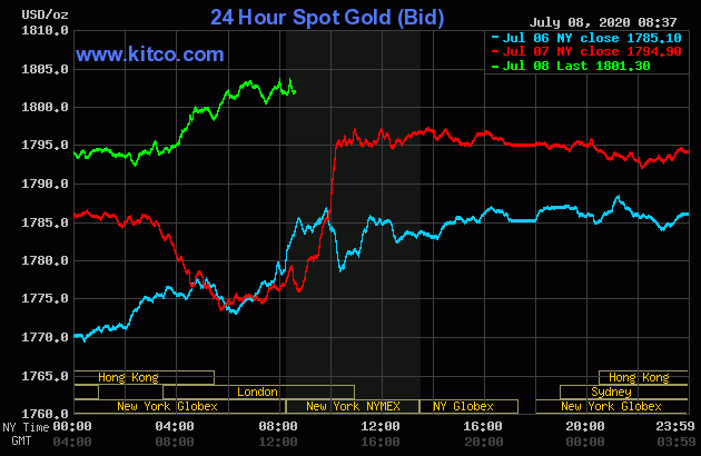 قیمت طلا بالاخره پس از ماه ها انتظار سطح 1800 دلار را شکسته و وارد محدوده 1800 دلار شد. هم اکنون هر انس طلا 1803 دلار قیمت دارد و بالا ترین قیمت طلا از سال 2011 محسوب می شود.
