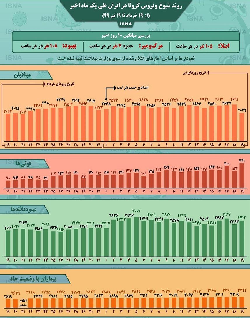 روند کرونا در ایران، از ۱۹ خرداد تا ۱۹ تیر
