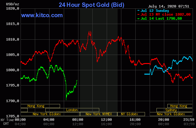 پس از رسیدن دوباره قیمت طلا به 1800 دلار در صبح روز گذشته، از عصر دیروز طلا روندی نزولی را شروع کرد. این روند نزولی تا امروز نیز ادامه داشت و قیمت طلا را تا 1790 دلار پایین آورد.