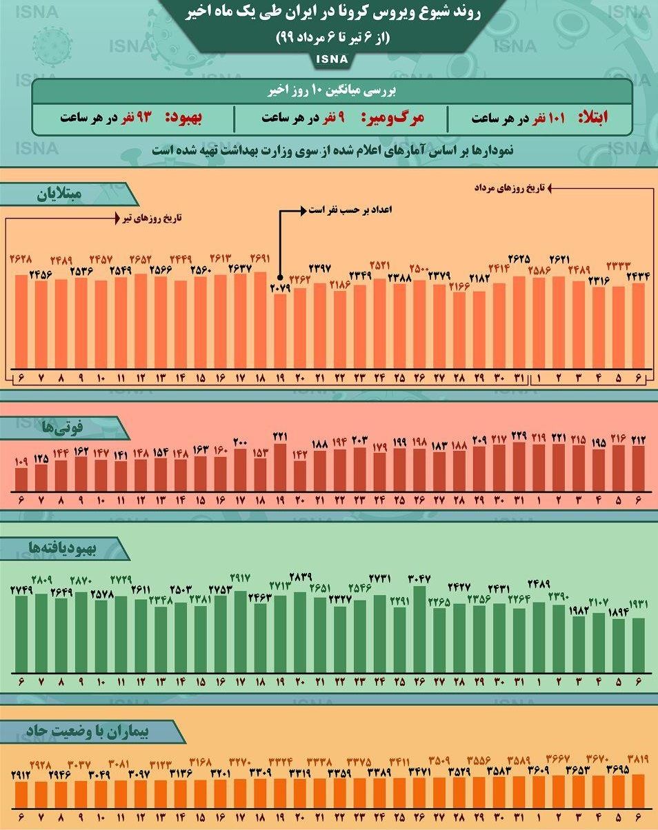 اینفوگرافیک /روند کرونا در ایران، از ۶ تیر تا ۶ مرداد