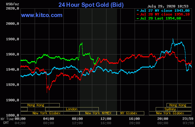 هم اکنون و در حالی که این متن نوشته می شود قیمت طلا 1952 می باشد که نسبت به روز گذشته کاهشی سه دلاری را نشان می دهد. اما وقتی از نوسان حرف می زنیم منظورمان این نیست.