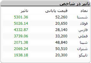 امروز عمده نمادهای مهم بورس در تقویت شاخص کل مؤثر بودند که میتوان به نمادهای شرکت شستا، فولاد مبارکه، پتروشیمی خلیج فارس، ملی مس ایران، پالایش نفت اصفهان، پالایش نفت تهران و هلدینگ نفت و گاز و پتروشیمی تأمین اشاره کرد.