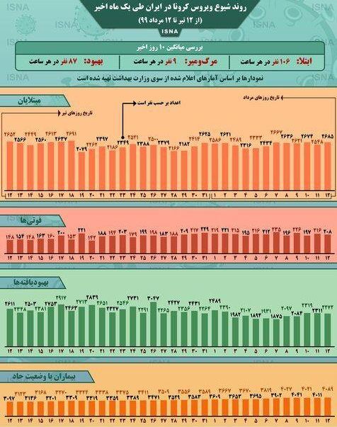 روند کرونا در ایران، از ۱۲ تیر تا ۱۲ مرداد