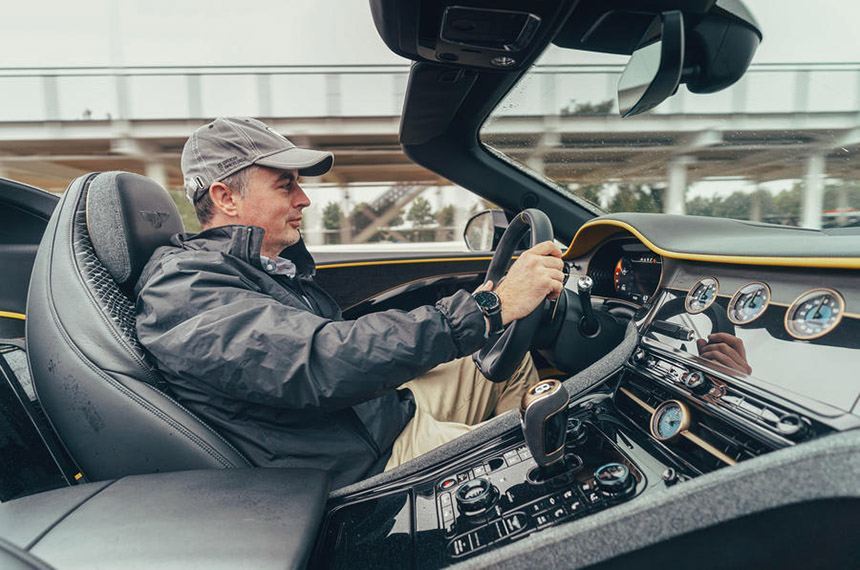 شرکت بنتلی در این خودرو چهار صندلی قرار داده است که پارچه استفاده شده در آن‌ها جنسی پشمی و نرم دارد؛ در داشبورد این خودرو نیز از چوب و ذغال سنگ نارس که حدود ۵ هزار سال عمر دارند استفاده شده است. طبق اعلام بنتلی علت استفاده از ترکیب سنگ و چوب در داشبور این ماشین، جلوگیری از نفوذ آب به داخل داشبرد است، مدیرعامل بنتلی نز در این رابطه گفته است که ما نمی‌توانیم محصولی را وارد بازار کنیم که حتی در مقابل آب نفوذپذیر باشد.
