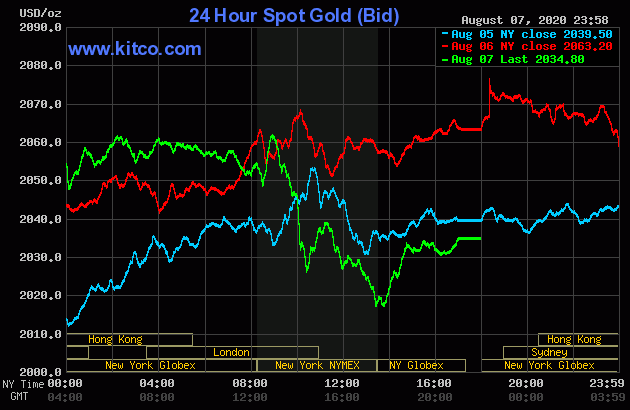 روز جمعه طلا شاهد یک افت قیمت شدید بود که میزان اندکیاز آن در بعد ازظهر همان روز جبران گشت. در نهایت قیمت هر انس طلا به 2034 دلار رسید که نسبت به روز قبل از خود 28 دلار کاهش قیمت را نشان می دهد.
