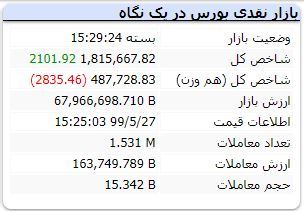 همچنین شاخص کل بورس با معیار هموزن امروز 2824 واحد کاهش یافته و به رقم 487 هزار و 740 واحد رسید.