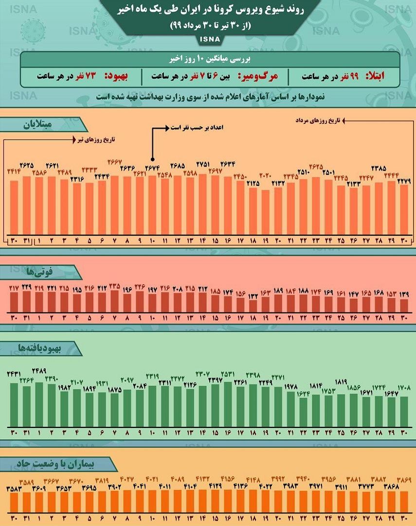 اینفوگرافیک /روند کرونا در ایران، از ۳۰ تیر تا ۳۰ مرداد