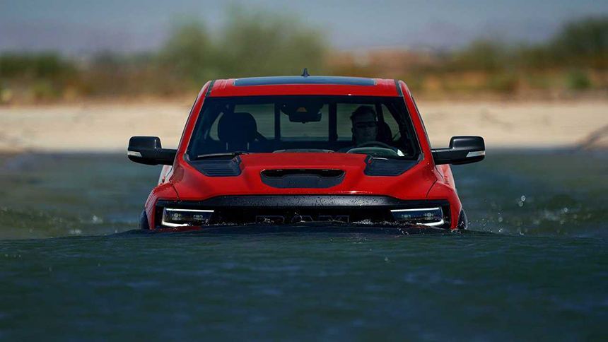 علاوه بر ۷۰۲ اسب بخار Hellcat V۸ و ۶۵۰ اسب بخار قدرت، رام TRX دارای یک هوای دوطرفه است که نیمی از آن از طریق یک هوای قوچ موجود در داخل مشبک و نیمی دیگر از طریق یک قلاب عملیاتی بزرگ هود بهره میبرد. این شرکت میگوید که این هیولا خارج از جاده فقط در ۴.۵ ثانیه و ۱۰۰ مایل در ساعت در ۱۰.۵ ثانیه میتواند به ۶۰ مایل در ساعت برسد.