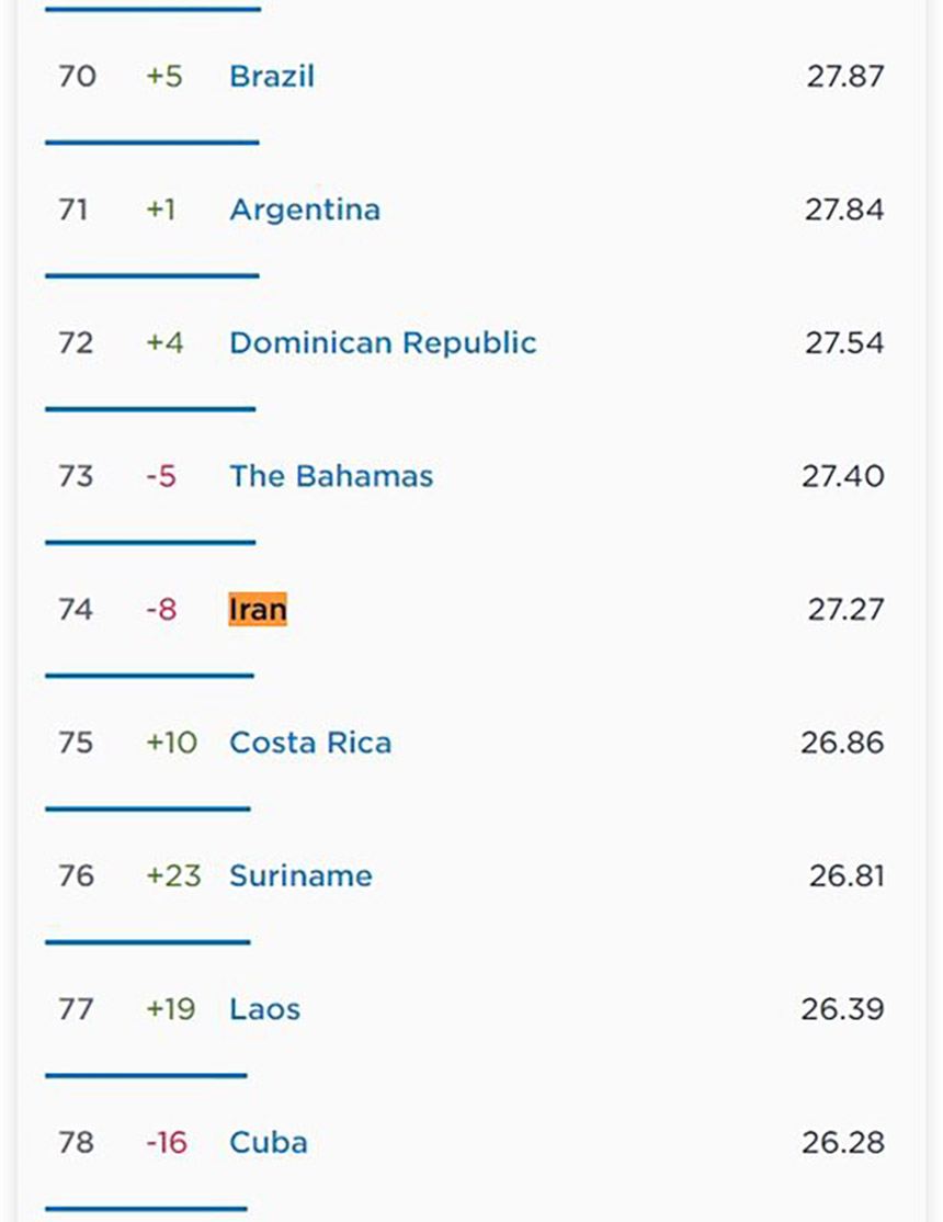طبق این آمار، اینترنت موبایل ایران در حال حاضر از باهاماس، جمهوری دومینیک و آرژانتین کندتر و از کاستاریکا، سورینام و لائوس سریعتر است.