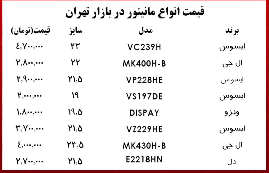 با بودجه ای به قیمت 2 تا 4 میلیون تومان میتوان اقدام به خرید مانیتور کنید