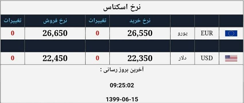 براین اساس هر دلار آمریکا نسبت به روزهای گذشته تغییری نداشت و ۴۲ هزار ریال قیمت خورد. هر پوند انگلیس به قیمت ۵۵ هزار و ۷۷۲ ریال و هر یورو نیز ۴۹ هزار و ۷۲۲ ریال اعلام شد.