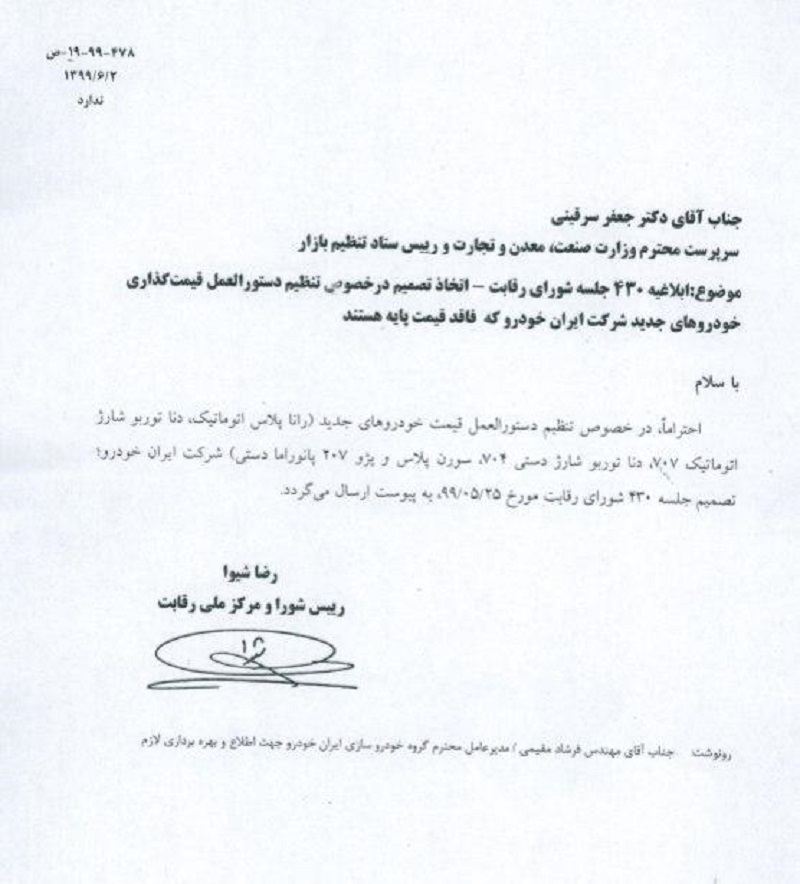 براساس نامه شورای رقابت، شرکت ایران خودرو مجوز افزایش قیمت برخی از محصولات خود را گرفت.