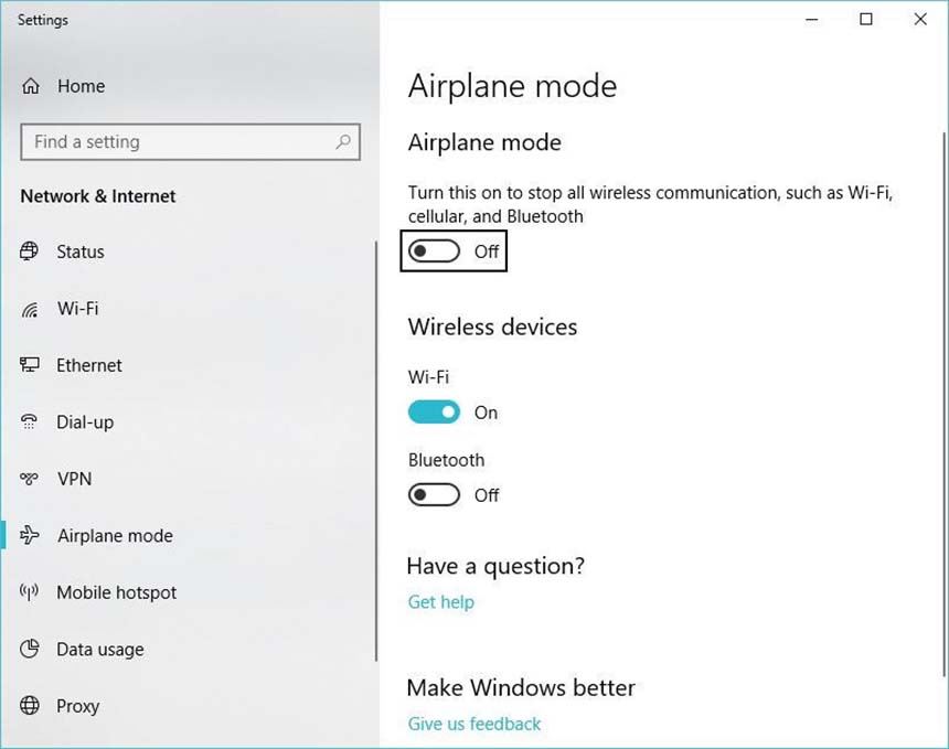 اگر فرد تنها از یک برنامه استفاده میکند میتواند حالت پرواز لپ تاپ را فعال سازد. این حالت زمانی برای کاربر مفید است که وی به هیچ وجه نیازی به اینترنت نداشته باشد و فقط از یک برنامه استفاده کند. حالت پرواز میتواند حجم زیادی از مصرف انرژی باطری را کاهش دهد چرا که نه تنها ارتباط با اینترنت و وایفای را قطع میکند بلکه برنامههایی که برای اعلانهای خود به اینترنت وابسته بودن را نیز متوقف میسازد.