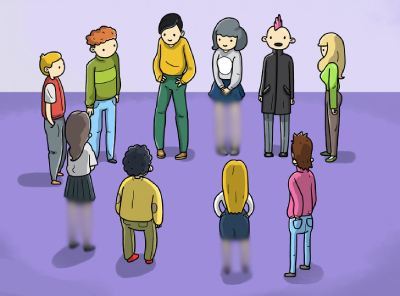 ۱۰ نفر در یک اتاق هستند و هر شخص میتواند کل اتاق و همه افراد را ببیند. شما میخواهید یک سیب قرار دهید تا همه افراد به جز یک نفر بتوانند آن را ببینند.