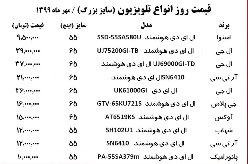 در جدول زیر قیمت تلویزیون های بزرگ را در بازار را برای شما گرد اوری کرده ایم.