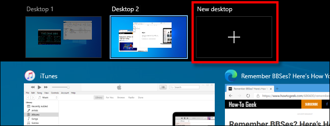 برای ایجاد سریع دسک تاپ مجازی جدید ، Windows + Ctrl + D را هر زمان فشار دهید ، بلافاصله به دسک تاپ جدید منتقل خواهید شد. همچنین می توانید روی «دسک تاپ جدید» در Task View کلیک کنید.