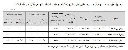 آمارهای بانک مرکزی بیانگر افزایش ۳۸ درصدی مانده سپردهها و ۳۱.۹ درصدی مانده تسهیلات بانکی در پایان تیر ماه ۹۹ نسبت به مقطع مشابه سال قبل است.