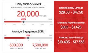 یوتیوبر های موفق می توانند درآمدهای خیلی بالایی داشته باشند ، اما مبلغی که دریافت می کنند بسیار متفاوت است. با این حال ، به طور متوسط ، یک کانال YouTube می تواند از هر 1000 بازدید آگهی 18 دلار درآمد کسب کند. این معادل 3 تا 5 دلار در هر 1000 بازدید ویدیو است. ارقام شما به بازدید روزانه ویدئو و میزان تعامل (CTR) شما بستگی دارد. به عنوان مثال ، اگر روزانه 20،000 بازدید داشته باشید و میانگین میزان کلیک شما 50٪ باشد ، درآمد سالانه پیش بینی شده شما 10403 دلار - 17338 دلار است.