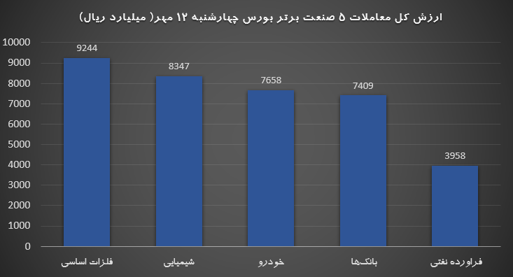 همچنین نماد سرمایهگذاری صبا تامین (صبا)، برق و انرژیپیوند گستر پارس (بپیوند)، شرکت سرمایه توسعه و عمران استان کرمان (کرمان)، تولید برق عسلویه مپنا (بمپنا)، بیمه کوثر (کوثر)، توسعه مسیر برق گیلان (بگیلان)، صنایع ماشین های اداری ایران (مادیرا)، بیمه سامان (بساما) و جنرال مکانیک (رنیک) تاثیر منفی بر شاخص این بازار را داشتند.