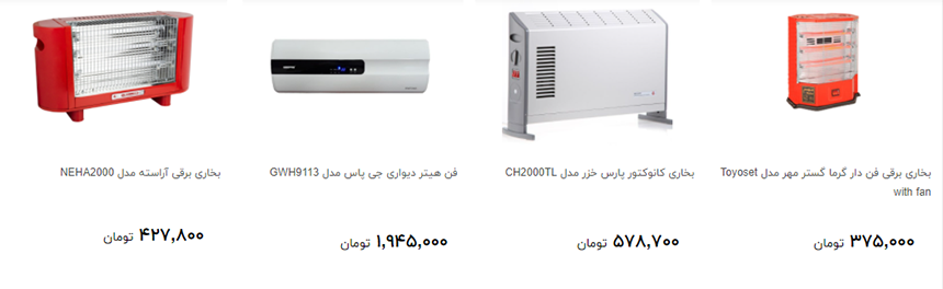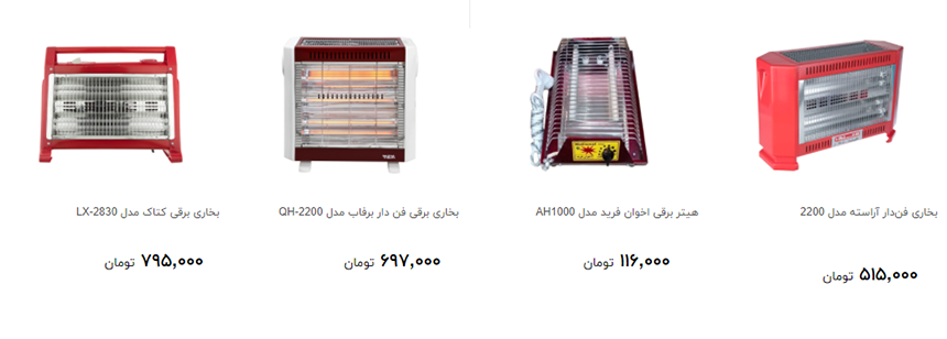 قیمت انواع بخاری برقی در بازار به شرح زیر است: