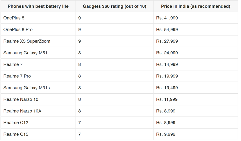 این لیست شامل تلفن هایی است که در تست حلقه باتری ویدیوی HD ما موفق به کارکردن بیش از 20 ساعت شدند. ما همچنین با توجه به تجربه ای که هنگام بررسی این تلفن ها داشتیم ، ظرفیت باتری و میزان زمان مصرف با استفاده منظم را بررسی کردیم. سایر ویژگی ها مانند شارژ سریع و شارژ بی سیم زیاد مورد توجه قرار نگرفتند ، زیرا هدف از این لیست داشتن تلفن هایی با بیشترین عمر باتری بود. ما همچنین به طور عمده پیشنهادهای اخیر را که مربوط به بازار را دارند بررسی کردیم.